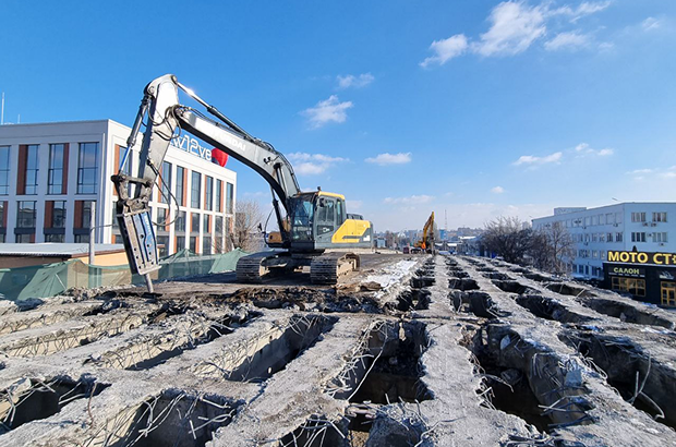 Інфраструктурний оглядач Павло Авдокушин опублікував фотографії демонтажу аварійного шляхопроводу на Новокостянтинівській над залізничними коліями. За перший день робіт з чотирьох прогонів зняли 15 балок. Протягом останнього тижня на прогоновій будові працюють два гідромолоти, що пробивають «вікна» в балках і руйнують окремі елементи конструкції для полегшення демонтажу, завдяки чому роботи вже досягли десятого прогону. Одночасно з демонтажем знімають консолі та відбійники.