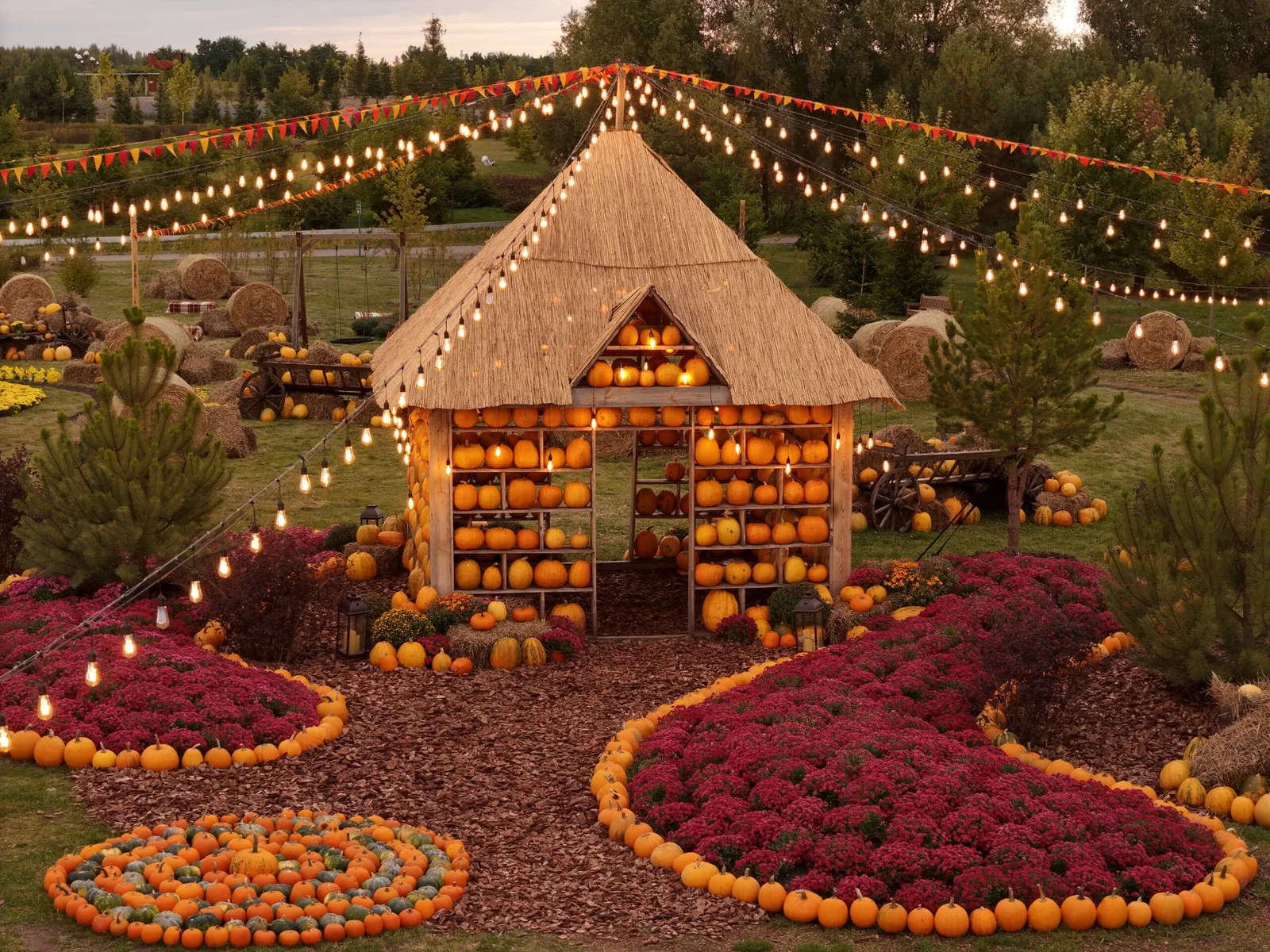 За 30 км від Києва — наймасштабніша осіння фотолокація України. Понад 50 тонн гарбузів, декоративні вежі, ретро-ліхтарі та родина капібар. Тут можна провести цілий день серед кольорів і фотофонів.