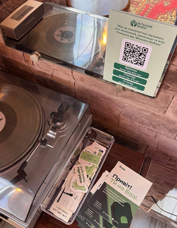 Окремо у «Коло» підтримують ветеранські ініціативи: тут можна придбати стікери, постери та брелоки від ГО «Вільний вибір», яка займається психологічною допомогою ветеранам.