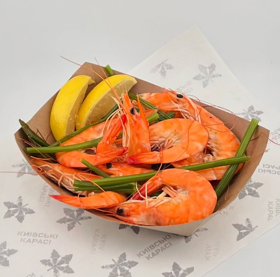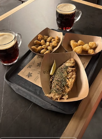 У меню пропонують смажені карасі, коропи, мідії, сир у фритюрі з соусами, а також салати, креветки, кальмари та рибну юшку. Напої представлені кількома видами живого пива (світле, пшеничне, темне, IPA), є також сидр та інші позиції.