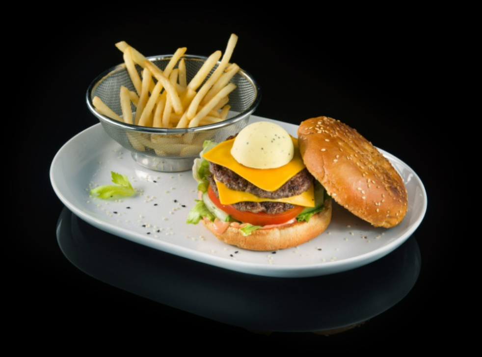 Дабл-бургер з яловичою котлетою та морозивом із гірчиці з медом – 349 грн