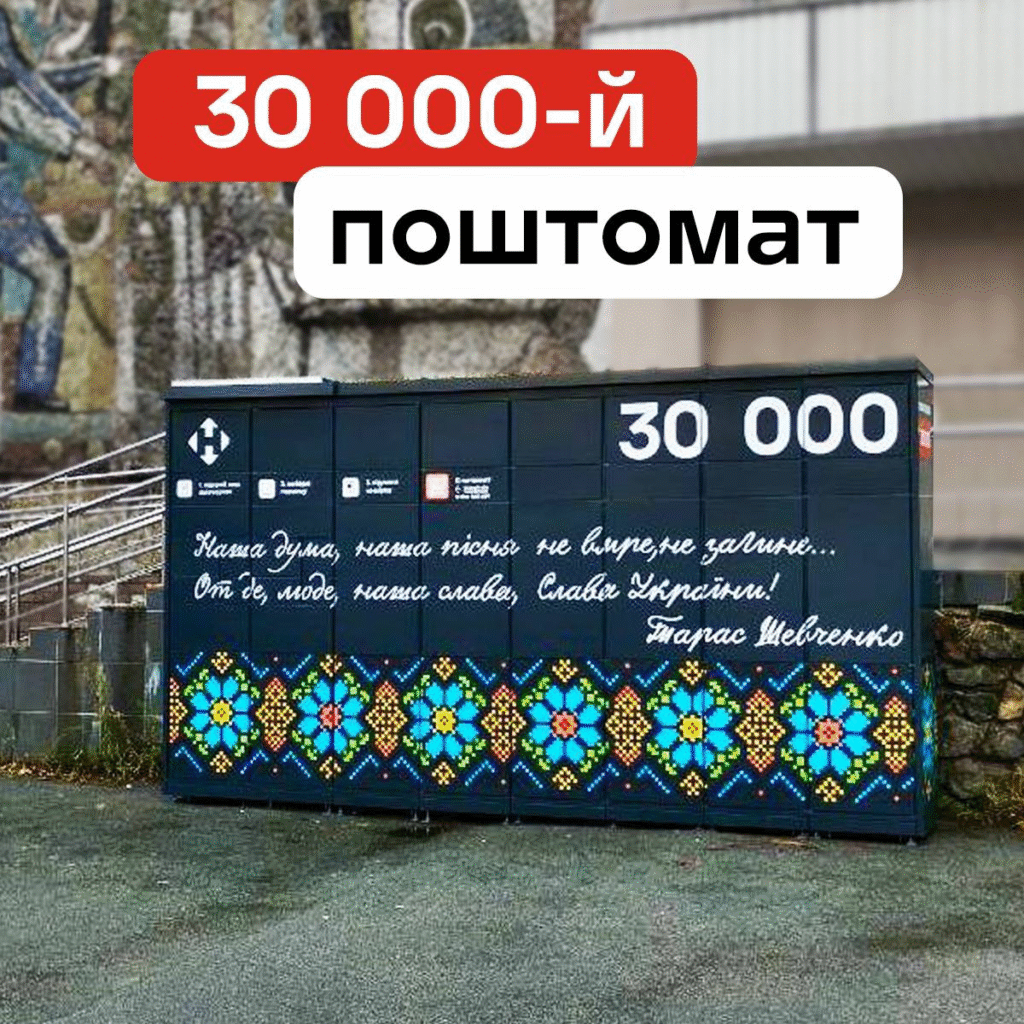 «Наша дума, наша пісня не вмре, не загине… От де, люде, наша слава, слава України!» — саме ці рядки Тараса Шевченка прикрашають 30 000-й поштомат, який «Нова пошта» встановила у столиці.